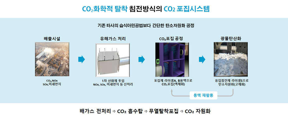 – 응집침전제인 “라이셀S” 를 통한 co2의 화학적 탈착 기술 확보